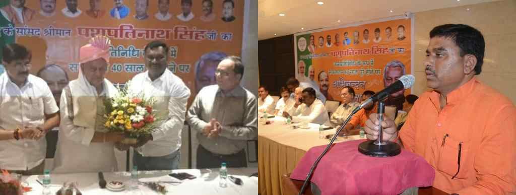 AJ डेस्क: भाजपा धनबाद और सांसद पशुपतिनाथ सिंह जी के मीडिया प्रभारी मिल्टन पार्थ सारथी की ओर से होटल सोनोटेल में आयोजित सांसद पशुपतिनाथ सिंह के जनप्रतिनिधि के रूप में 40 वर्ष पूरे होने पर एक अभिनंदन समारोह शुक्रवार को किया गया। कार्यक्रम की अध्यक्षता भाजपा के जिला अध्यक्ष चंद्रशेखर सिंह ने की।