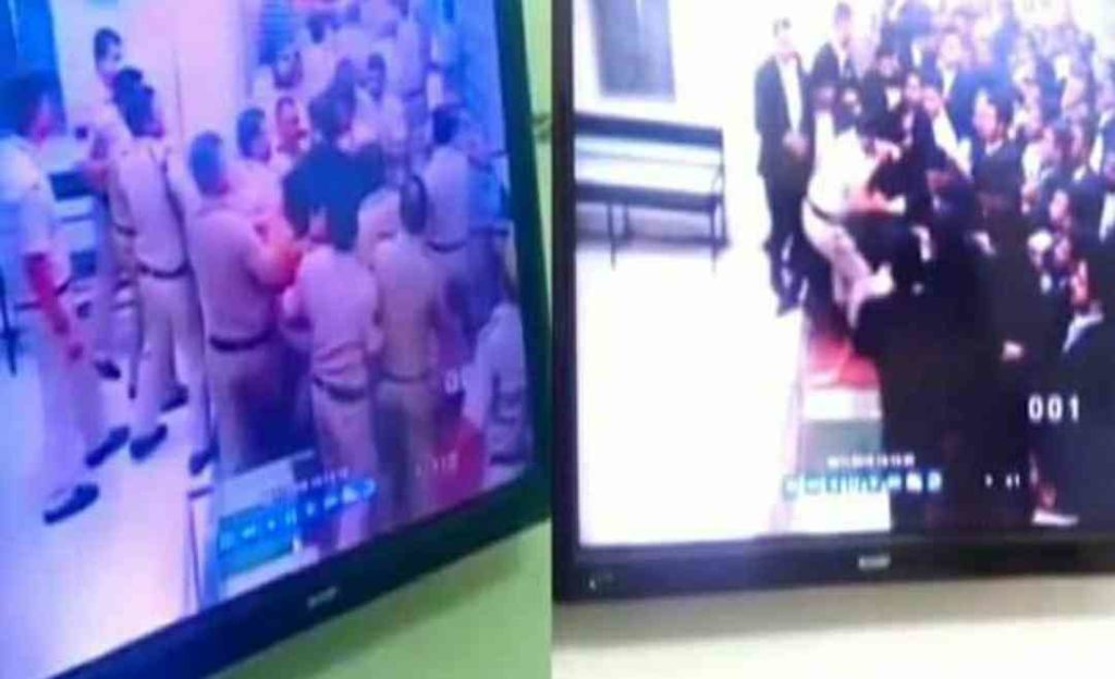 तीस हज़ारी कोर्ट का एक और सीसीटीवी फुटेज, जिसमें पहले लॉकअप के बाहर पुलिसवालों और वकीलों में मारपीट हो रही है,फिर पुलिसवाले इकठ्ठा होकर एक वकील को मारते हुए अंदर ले आते हैं pic.twitter.com/4xRjBX2CPr