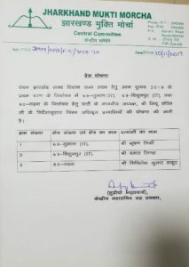झामुमो के पहले लिस्ट में तीन प्रत्याशियों की घोषणा