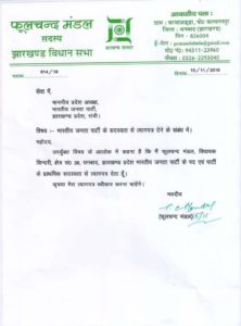 AJ डेस्क: सिंदरी से भाजपा के विधायक फूलचंद मंडल ने आज पार्टी और विशेषकर मुख्यमंत्री पर आरोप की झड़ी लगाते हुए भाजपा से इस्तीफा दे दिया।