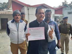 पूर्व केंद्रीय मंत्री सुबोध कांत सहाय ने रांची स्थित एचईसी महिला समिति की बूथ संख्या 373 में मतदान किया।