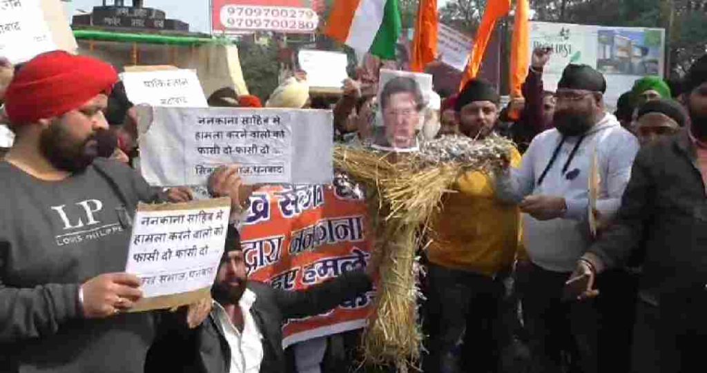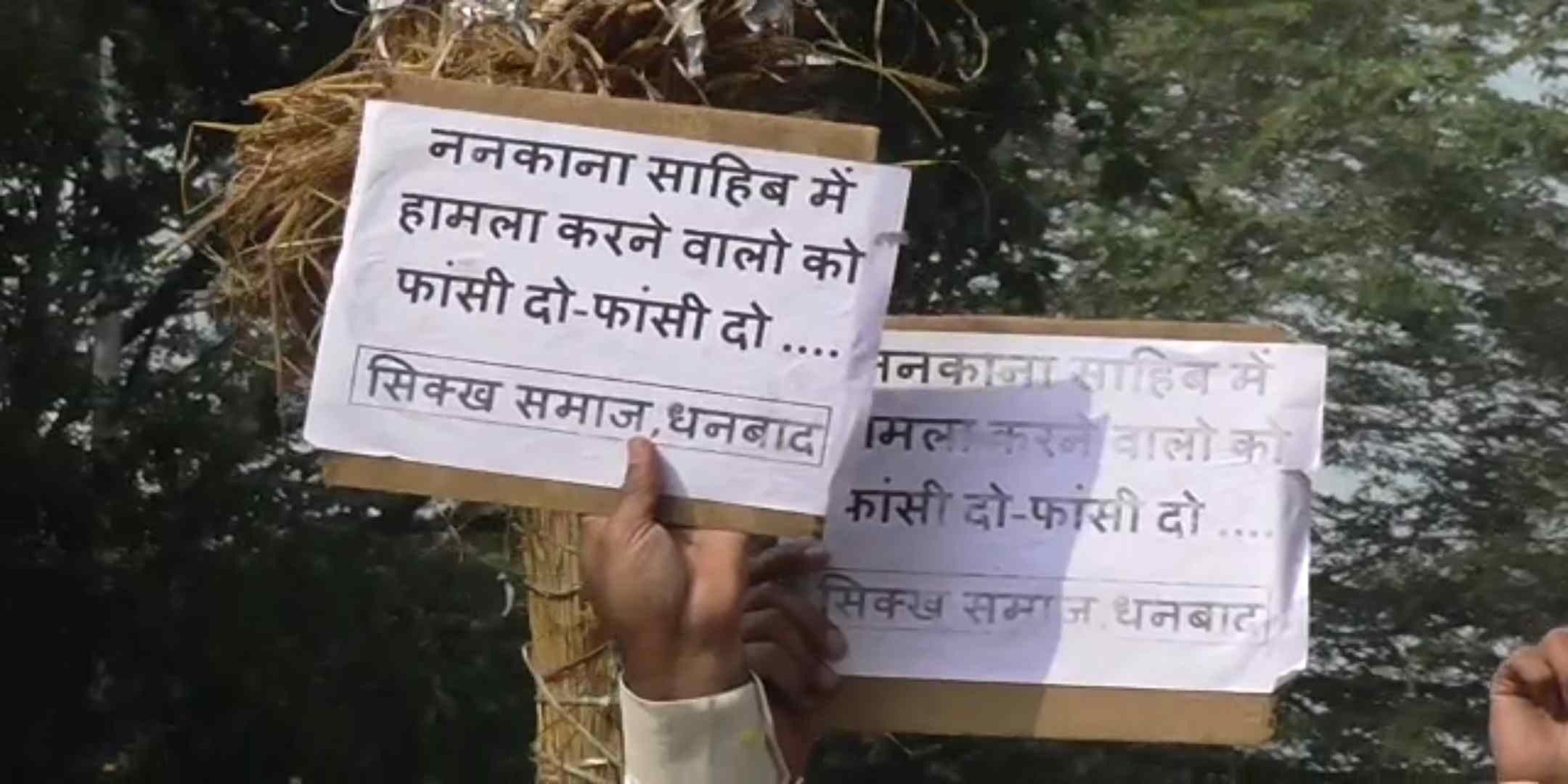 ननकाना साहब प्रकरण: धनबाद के सिख समुदाय में आक्रोश, पुतला जलाया