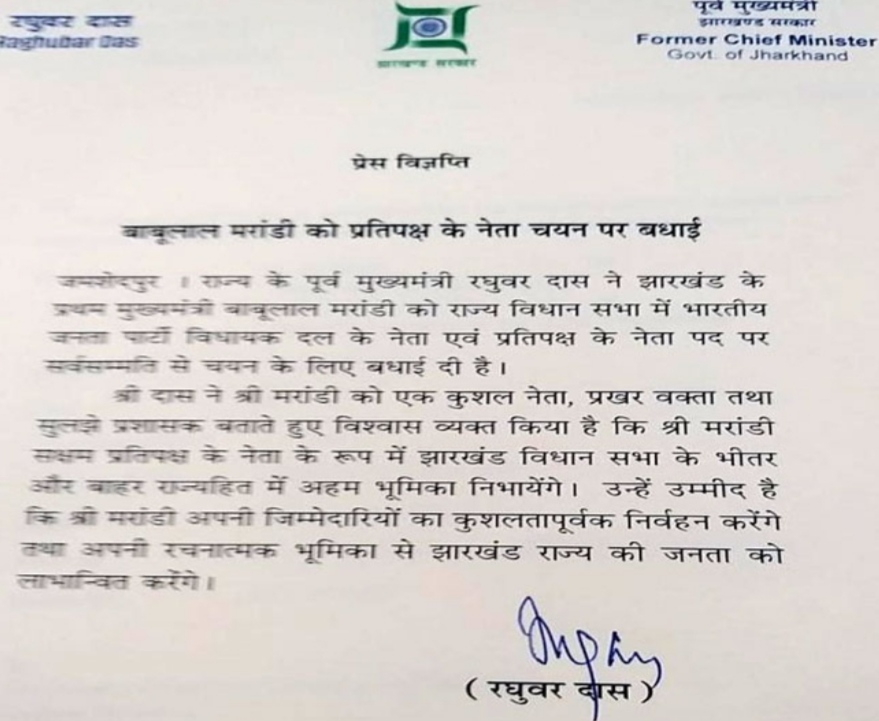 झारखण्ड: “बाबूलाल” विधान सभा का बने नेता ‘प्रतिपक्ष’