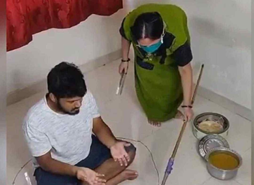 सोशल डिस्टेंसिंग का असर, पत्नी भी दूर से ही परोस रही भोजन (देखें रोचक वीडियो)