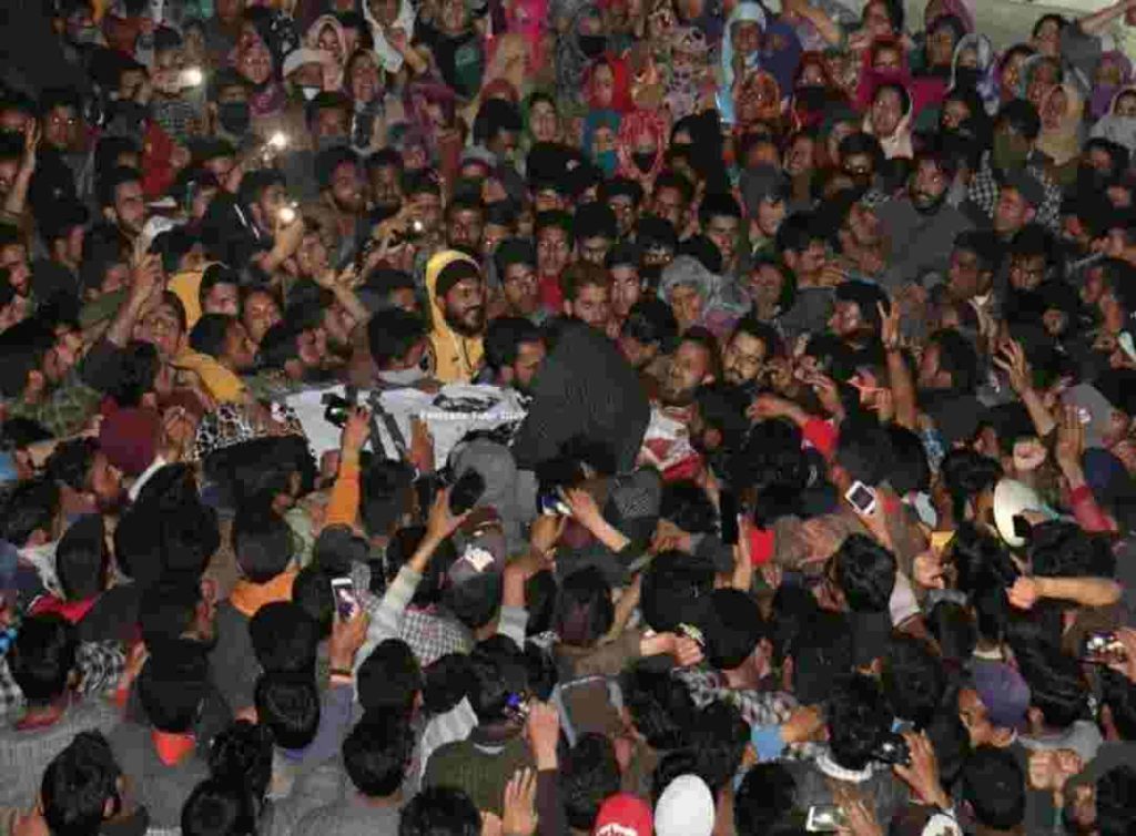 मुठभेड़ में मारे गए आतंकी की अंतिम यात्रा में सैकड़ो हुए शामिल, सोशल डिस्टेंसिंग की उड़ी धज्जियां