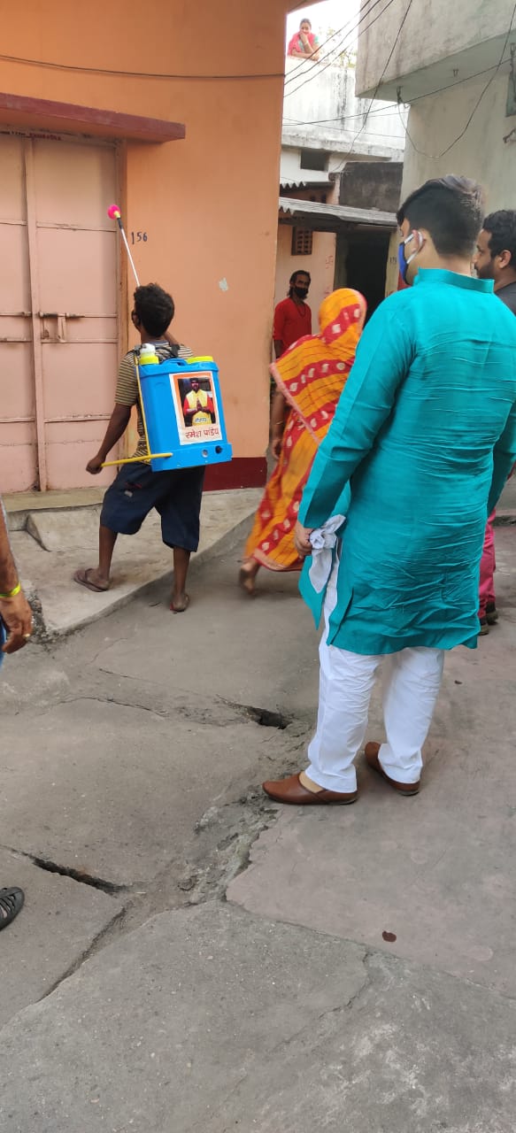 कोरोना के रोकथाम के लिए युद्ध स्तर पर सैनेटाइज कराया युवा नेता ने