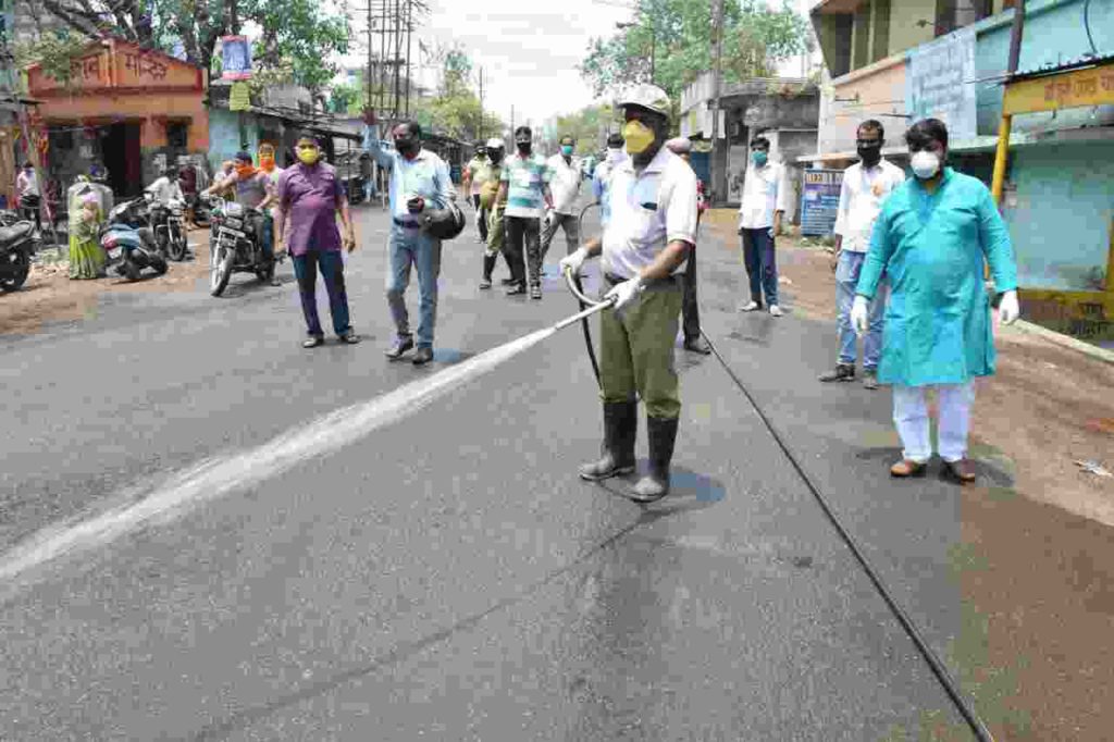 AJ डेस्क: झरिया के कतरास मोड़ से बाटा मोड़ तक आज नगर निगम की ओर से सैनेटाइज करवाया गया। युवा नेता रमेश पांडे के अनुरोध पर मेयर ने केमिकल का छिड़काव करवाया।वहीं दूसरी ओर श्री पांडे ने झरिया के विभिन्न क्षेत्रों में 600 घरों में राशन बंटवाया।
