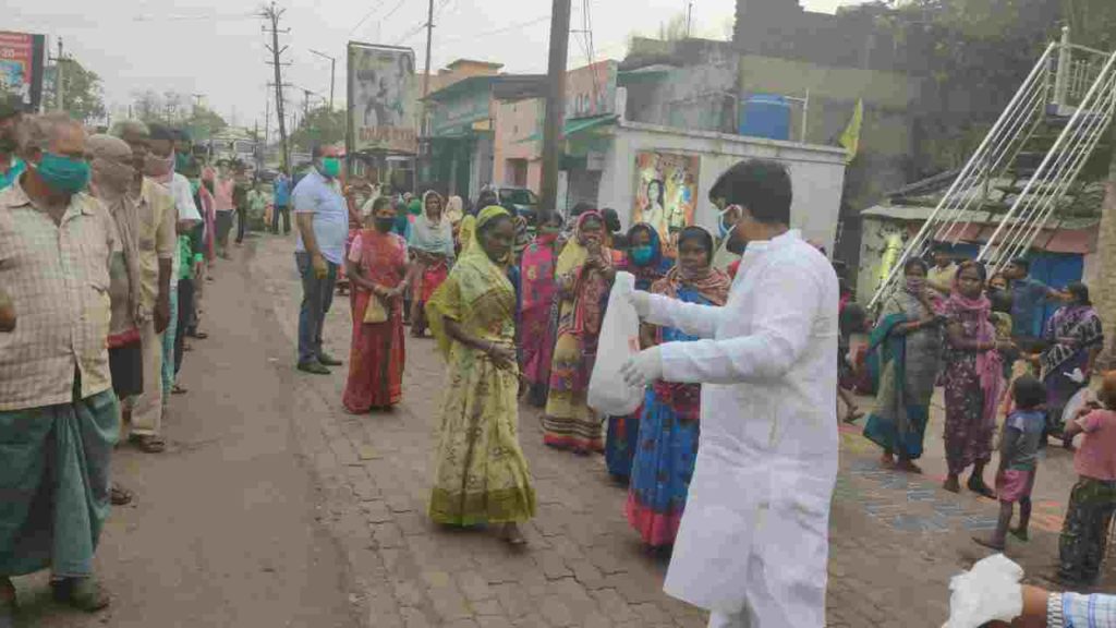 सोशल डिस्टेंसिंग का पालन करते हुए रमेश ने 6 सौ लोगों के बीच बांटा राशन