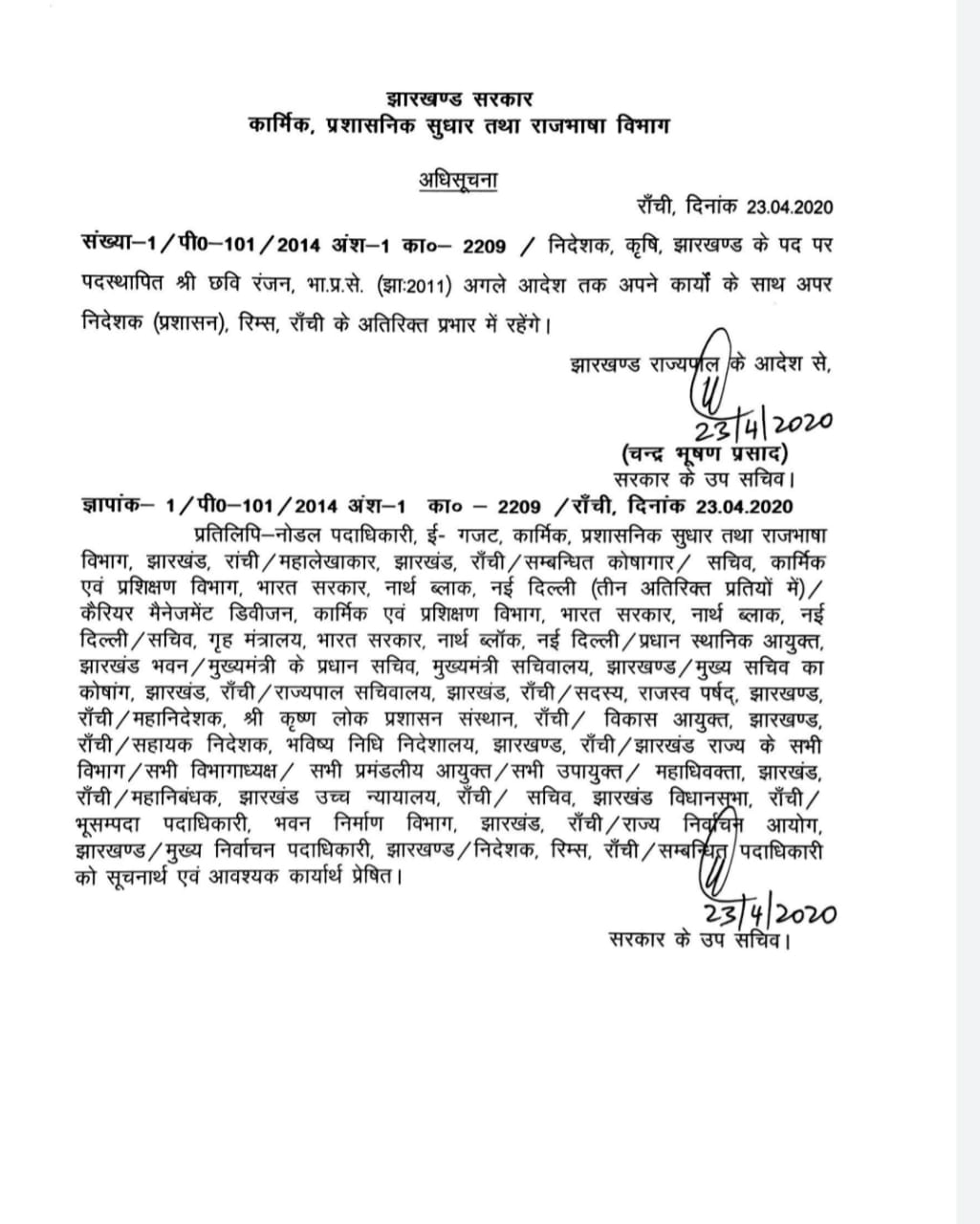 छवि रंजन बने ‘रिम्स’ के अपर निदेशक, डॉ डी के सिंह गए भटिंडा “एम्स”