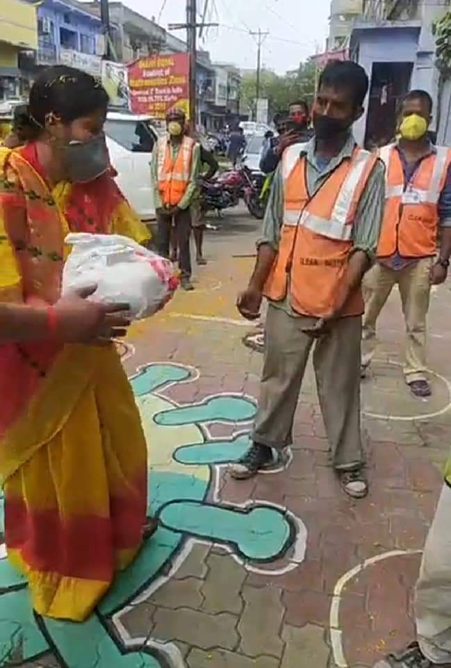 झरिया के धर्मशाला रोड में आज भाजपा नेत्री कोरोना योद्धाओं सफाईकर्मियों के बीच राशन बाँटने गयी थीं। सोशल डिस्टेंसिंग का पालन करते हुए रागिनी सिंह ने सफाईकर्मियों के बीच राशन बांटा। लॉक डाउन लगने के बाद से भाजपा नेत्री रागिनी सिंह के द्वारा क्षेत्र में घुम घुम कर जरूरतमन्दों के बीच लगातार राशन, भोजन, मास्क, सेनेटाइजर बांटे जाने से खुश धर्मशाला रोड के निवासियों ने आज रागिनी सिंह पर पुष्प वर्षा कर उनके नेक कार्य के लिए सम्मानित किया।