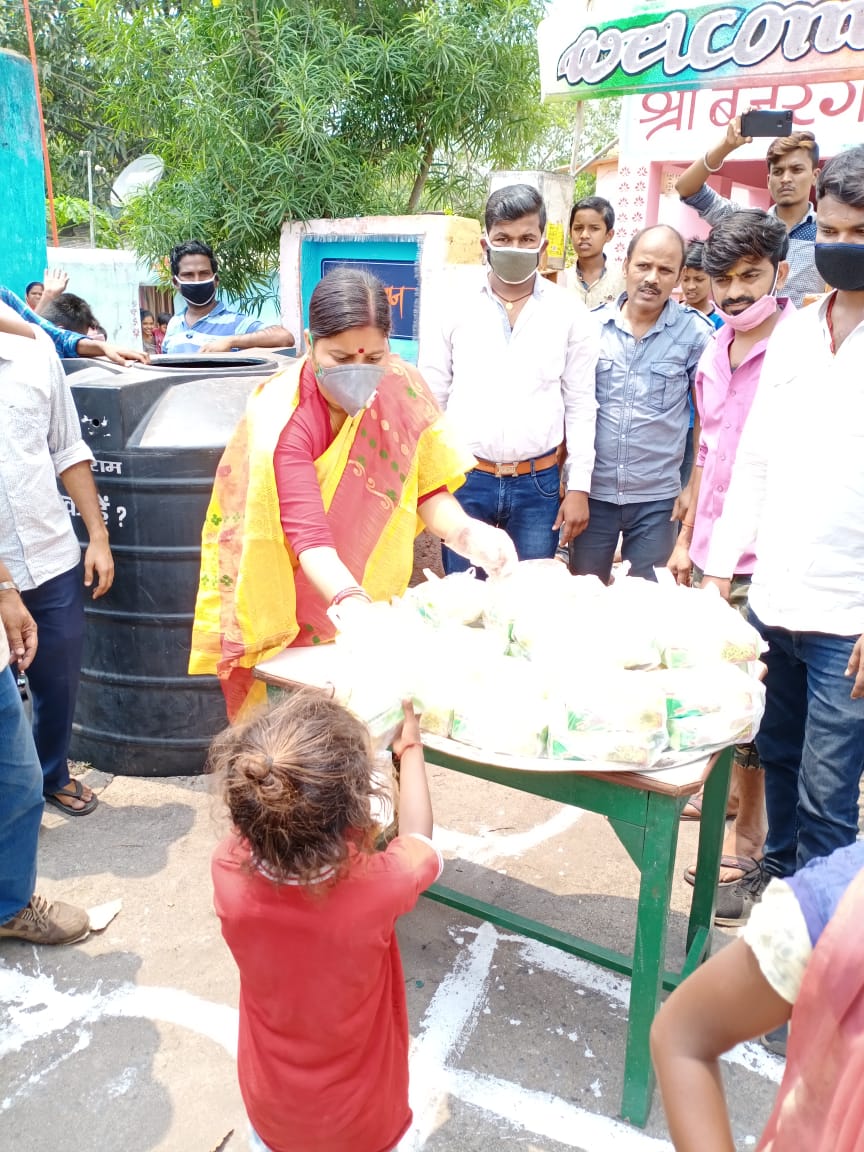भाजपा नेत्री रागिनी सिंह ने आज कुस्तौर दुर्गा मंदिर के समीप सैकड़ो जरूरतमन्दों के बीच भोजन का पैकेट बांटा।