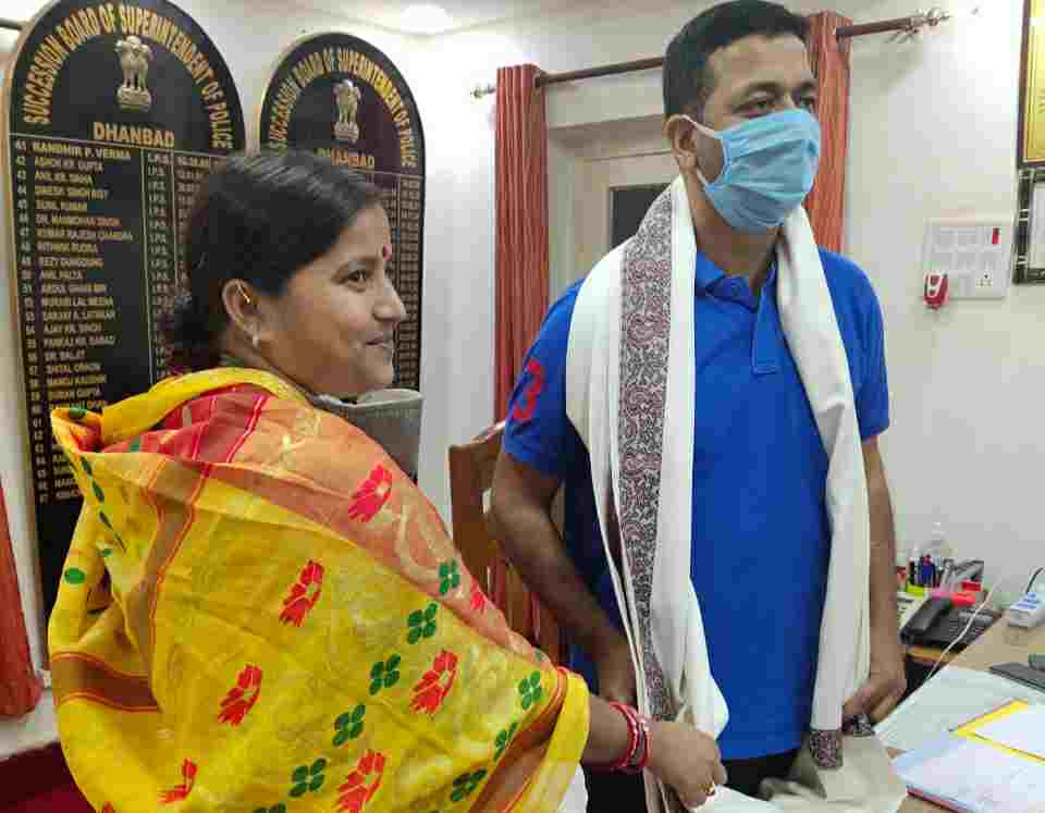 SSP को शॉल भेंट कर सम्मानित किया रागिनी ने तो झरिया में फूलों की बारिश हुई भाजपा नेत्री पर