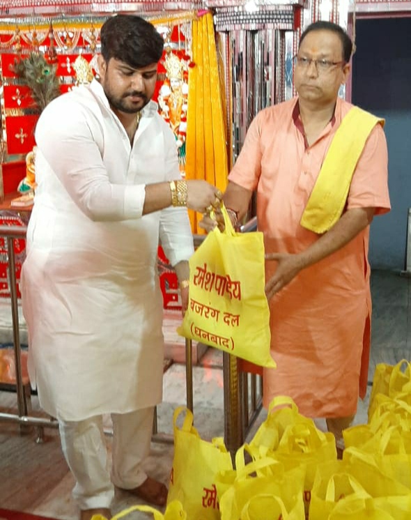 इसके अलावा झरिया के विभिन्न क्षेत्रों का भ्रमण करते हुए रमेश पांडे ने चार सौ लोगों के बीच राशन बांटा। वहीं बजरंग दल कार्यालय के समीप जरूरतमंद लोगों को आज भी भोजन कराया गया।