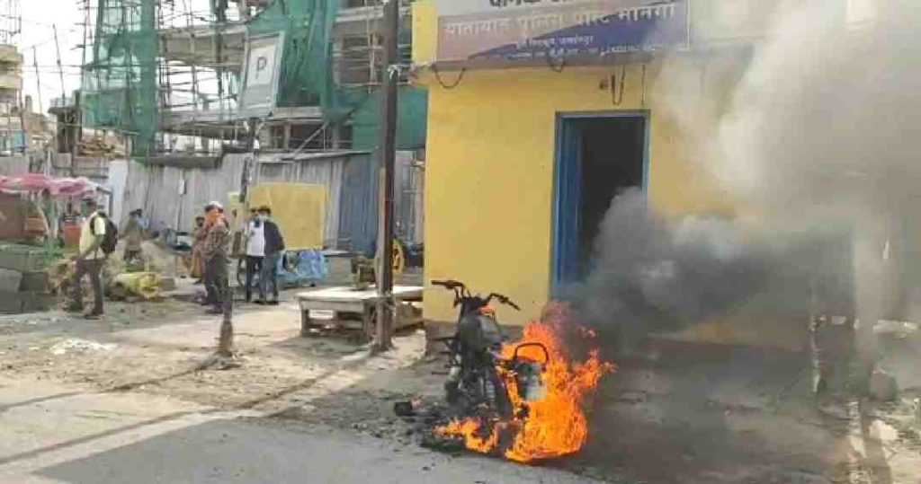 AJ डेस्क: थाना में बैठा पीड़ित राजेंद्र सिंह जमशेदपुर के मानगो पुलिस पर कई गम्भीर आरोप लगा रहा है। राजेंद्र का कहना है कि रोज रोज पुलिस के गलत ‘हर्जाना’ से परेशान होकर ही आज उसने अपनी बाइक को उसी पुलिस वालों के सामने आग के हवाले कर दिया। लॉक डाउन में भोजन का जुगाड़ हो नही रहा, पुलिस की बेजा मांग वह कहाँ से पूरा कर सकते हैं। इस विचित्र घटना की खबर पूरे लौह नगरी में जंगल की आग की तरह फैल गयी है।