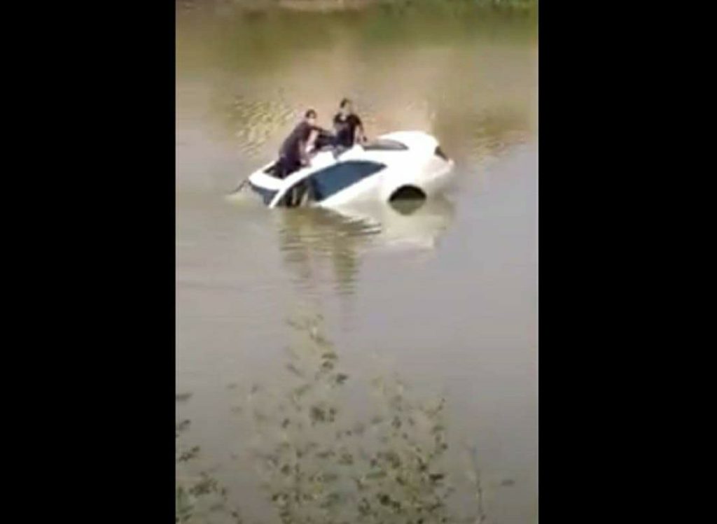तालाब में गिरी मर्सिडीज, मदद की गुहार लगाते लगाते डूब गए दम्पति, देखें Video-