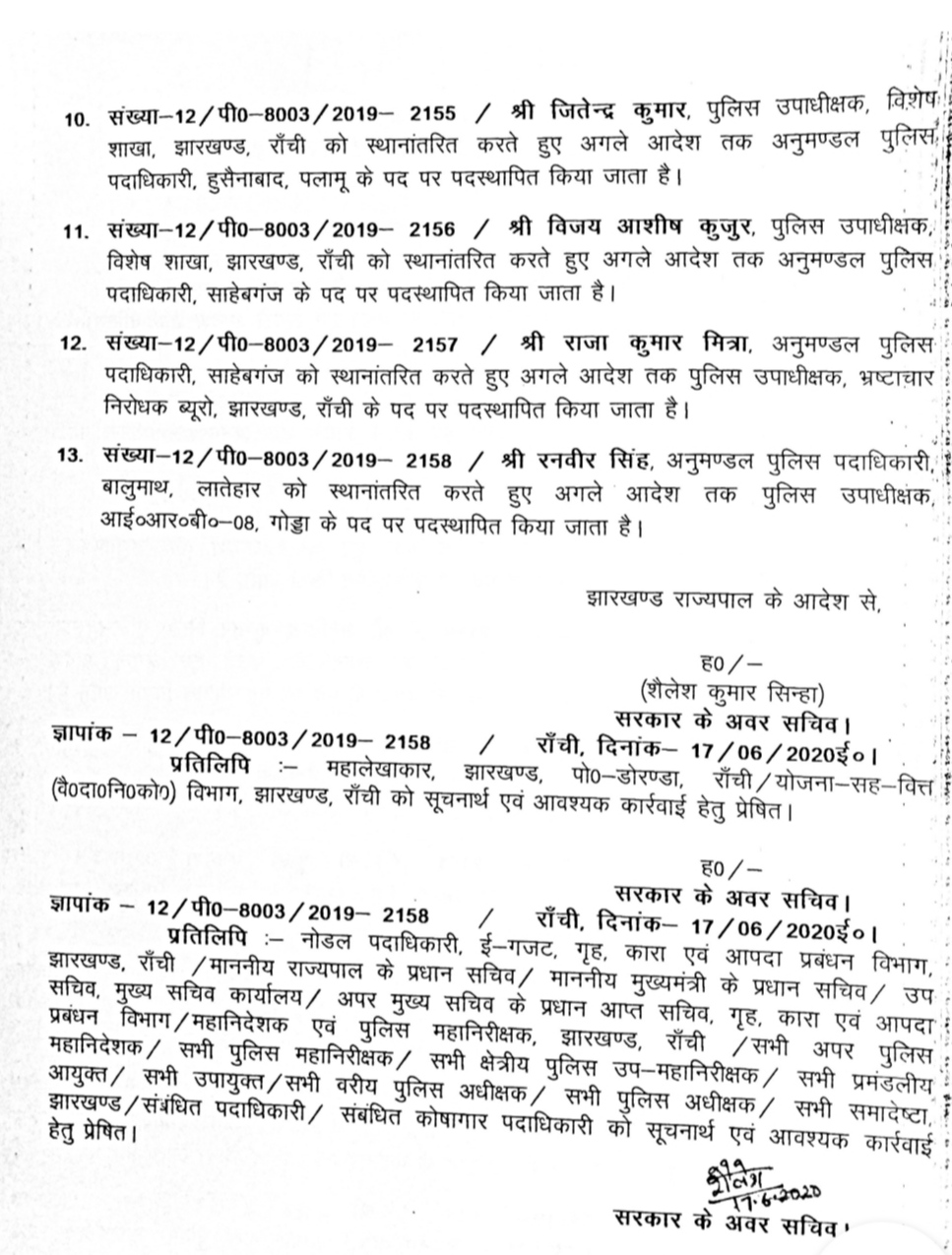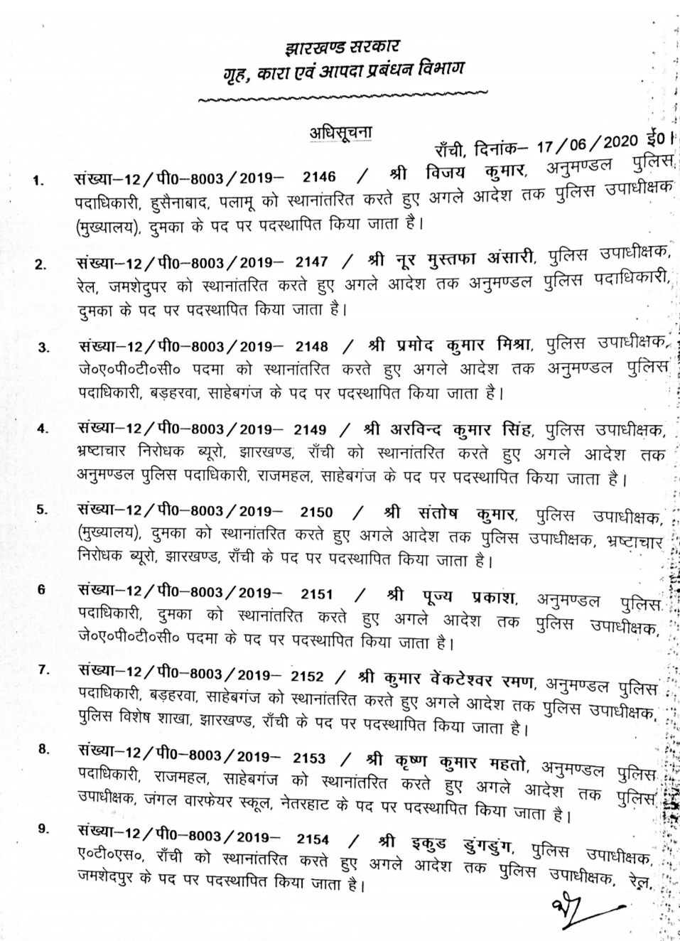 BREAKING NEWS झारखंड झारखण्ड के तेरह पुलिस उपाधीक्षक का इधर से उधर हुआ तबादला 5 years ago Analjyoti गृह,कारा एवम प्रबन्धन विभाग ने आज सूबे के तेरह पुलिस उपाधीक्षक का तबादला किए जाने से सम्बंधित पत्र जारी किया है।पढ़ें पूरी सूचि— Continue Reading Previous विहिप ने चीन के राष्ट्रपति का पुतला फूंका,शहीदों को दी श्रद्धांजलिNext पुराना बाजार में छापामारी कर SDM ने आधा दर्जन दुकानदार को पकड़ा,पुलिस कर रही कार्रवाई Leave a Reply Cancel replyYour email address will not be published. Required fields are marked *Comment Name * Email * Website