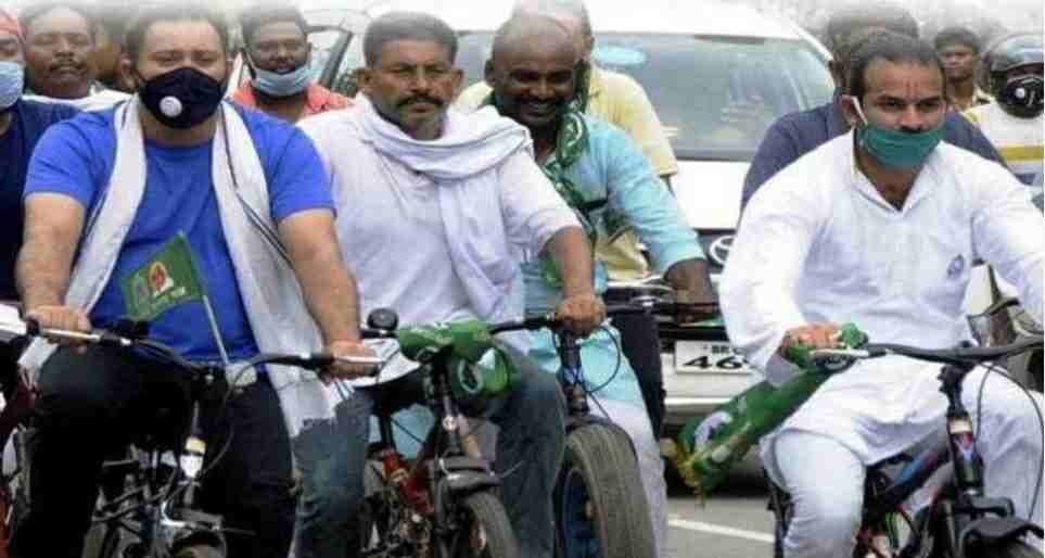 पेट्रोल की बढ़ती कीमतों के खिलाफ राजद का साइकिल रैली
