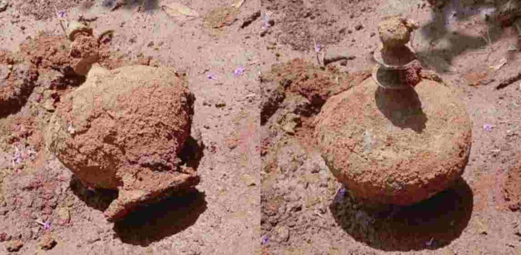 जानकारी के अनुसार बचन बैठा के खेतों के समतलीकरण के लिए जेसीबी से खुदाई की गई थी। इसी दौरान धातु की गगरी निकलने की बात कही जा रही है। खुदाई मे निकली यह गगरी किसी ठोस धातु की नक्काशीदार है।