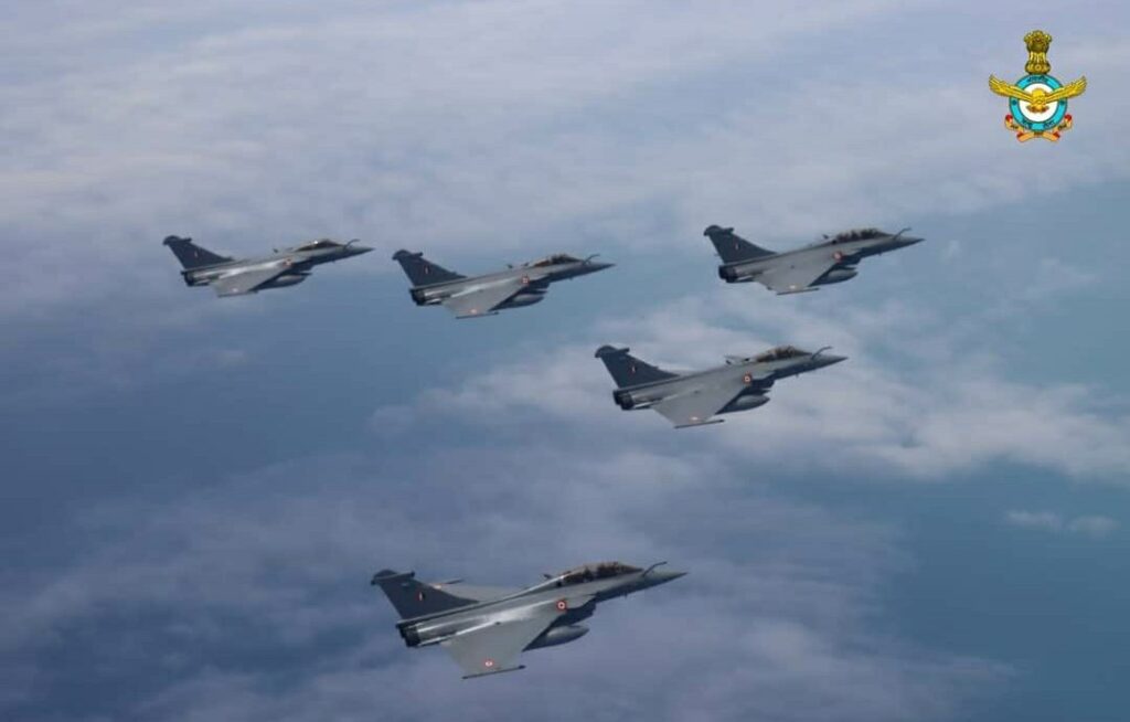 AJ डेस्क: फ्रांस से रवाना हुआ राफेल लड़ाकू विमानों का पहला जत्था अंबाला स्थित भारतीय वायु सेना (आईएएफ) के एयरबेस पर लैंडिंग कर चुका है। भारतीय वायु सीमा में दाखिल होने पर नौसेना के युद्धपोत ने इसका स्वागत किया। फ्रांस से ये लड़ाकू विमान सोमवार को रवाना हुए। मंगलवार को ये अपने पड़ाव के तहत संयुक्त अरब अमीरात में रुके थे।