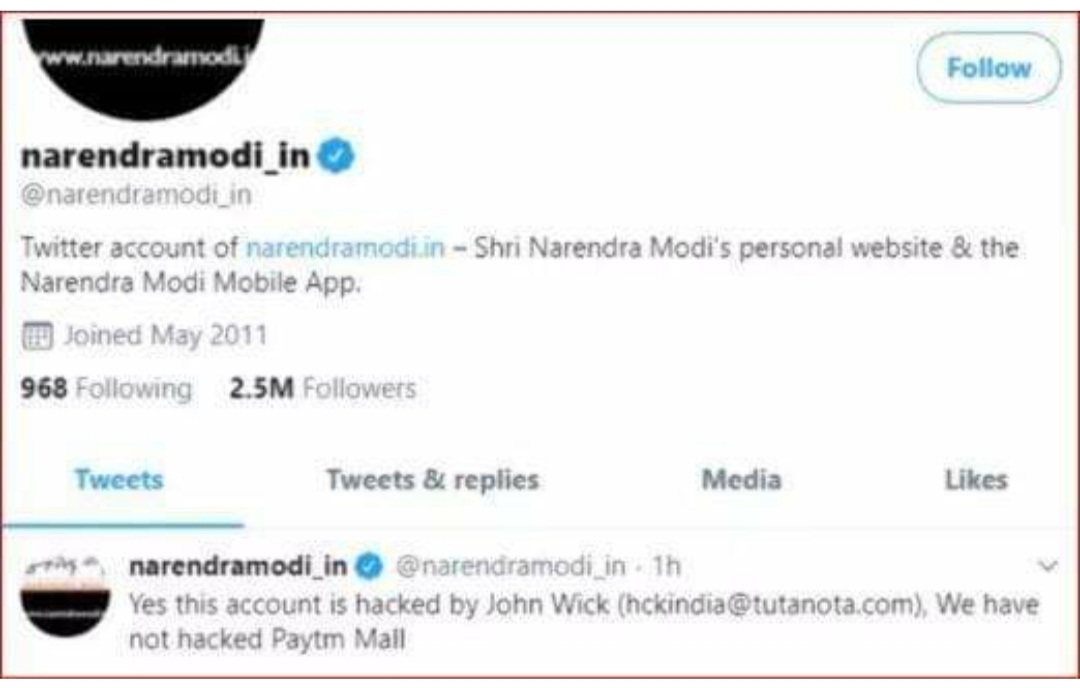 AJ डेस्क: प्रधानमंत्री नरेंद्र मोदी की पर्सनल वेबसाइट का ट्विटर अकाउंट (@narendramodi_in) हैक किए जाने की बात ट्विटर ने मान ली है और कहा है कि इस मामले की जांच की जा रही है। जॉन विक ग्रुप ने इसे हैक कर लिया था और इससे रिलीफ फंड के लिए डोनेशन में बिटक्वॉइन की मांग की गई थी। हालांकि कुछ ही देर में इसमें सुधार कर दिया गया। अब इस पूरे मामले पर ट्विटर का बयान आया है, जिसमें हैकिंग की बात को स्वीकार करते हुए जांच की बात कही गई है।