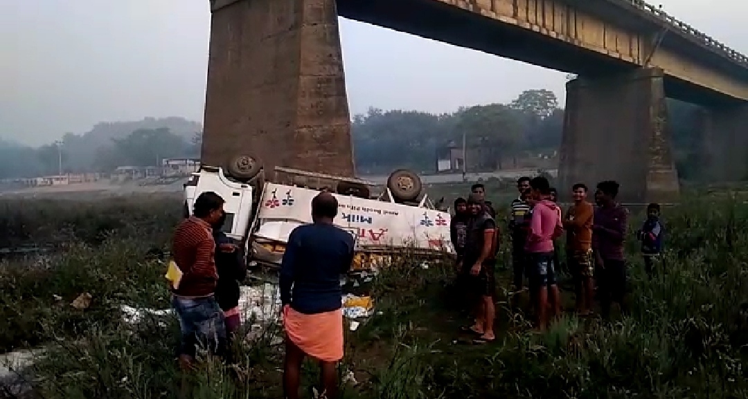 दूध से भरी वाहन दामोदर नदी में जा गिरी