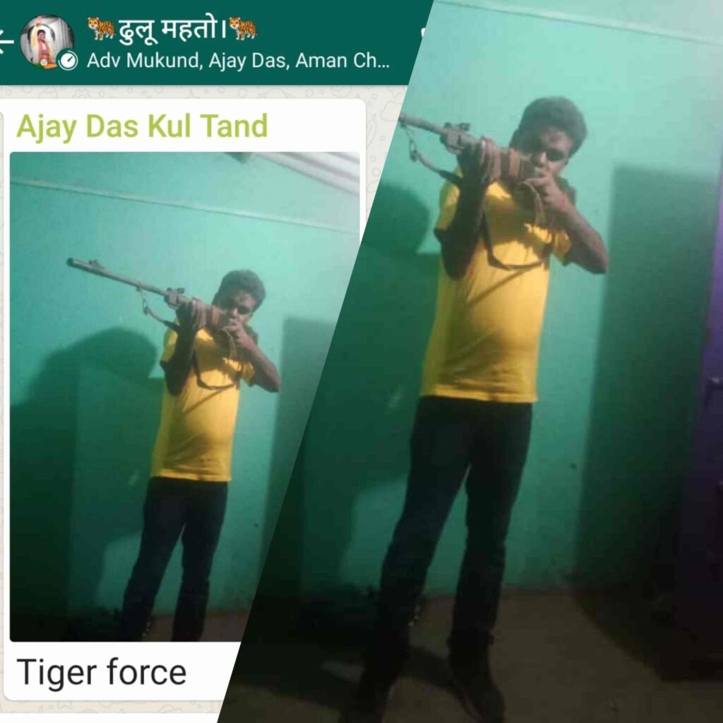 तस्वीर में बंदूक ताने दिख रहे शख्स का नाम अजय दास है। यह धनबाद के महुदा थाना क्षेत्र का रहने वाला है। अजय दास गिरिडीह सांसद का प्रतिनिधि भी है। साथ ही यह बाघमारा विधायक ढुल्लू महतो का भी काफी करीबी और जबरदस्त समर्थक बताया जाता है। यही वजह है कि सांसद प्रतिनिधि अजय दास की पैरवी भाजपा के कई बड़े नेता कर रहे हैं।