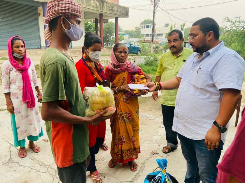 यूथ इंटक ने सेक्टर 5 में असहाय परिवार के बीच बांटा कच्चा राशन