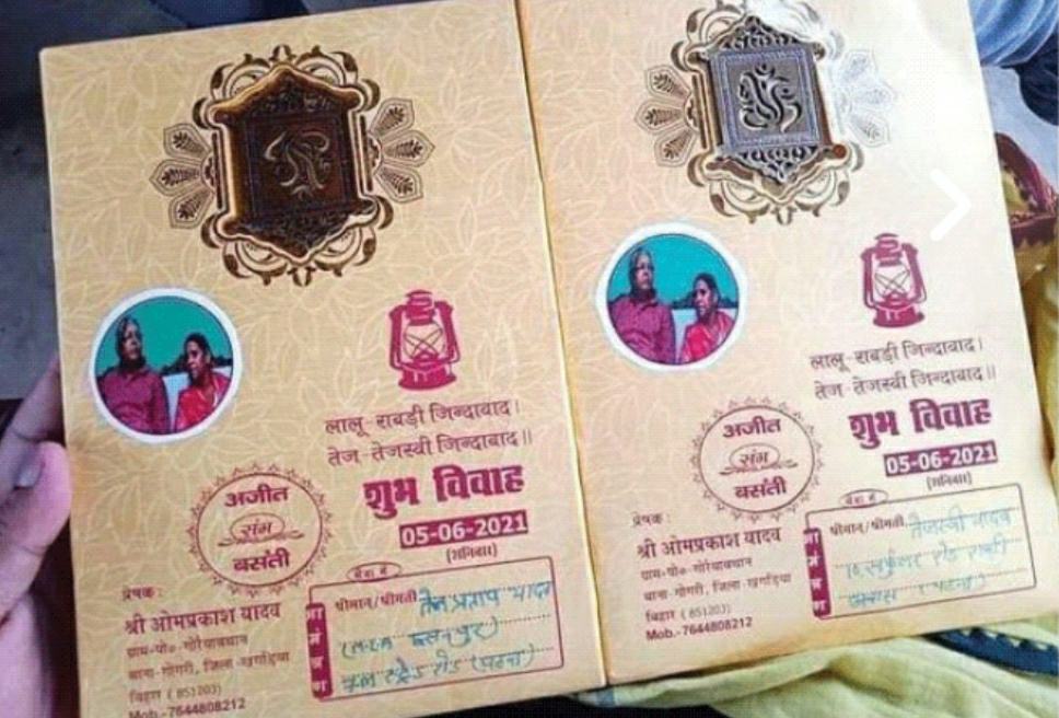 शादी कार्ड पर 2025 में तेजस्वी को वोट देने की अपील की थी-