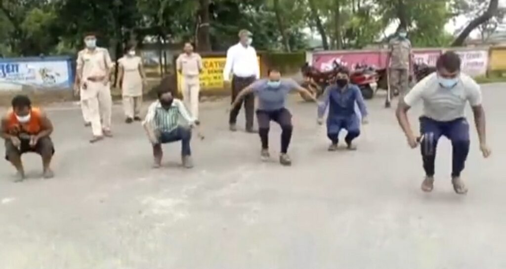 सडको पर बेवजह निकलने वाले और बिना मास्क के पकड़े गए लोगों को पकड़ कर पुलिस ने पहले तो उनसे कान पकड़ कर उठकबैठक कराया और इसके बाद उनसे सड़क पर मेंढक दौड़ भी करवाया। बाद में पुलिस ने उन लोगों को कोरोनाकाल को लेकर जारी गाइड लाइन का पालन करने की हिदायत देकर छोड़ दिया।