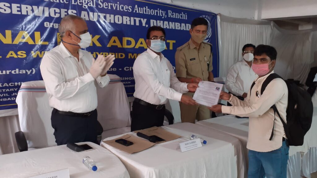AJ डेस्क: नेशनल लोक अदालत संविधान के परिकल्पना को पूरी करने की दिशा में एक कदम है। उक्त बातें शनिवार को धनबाद सिविल कोर्ट में आयोजित नेशनल लोक अदालत के उद्घाटन के मौके पर प्रधान जिला एवं सत्र न्यायाधीश सह डालसा के चेयरमैन राम शर्मा ने कही। इस दौरान प्रधान जिला जज एवं निदेशक कार्मिक बीसीसीएल ने ऑनस्पॉट 14 लोगों को अनुकंपा के आधार पर नियुक्ती पत्र भी सौंपा।