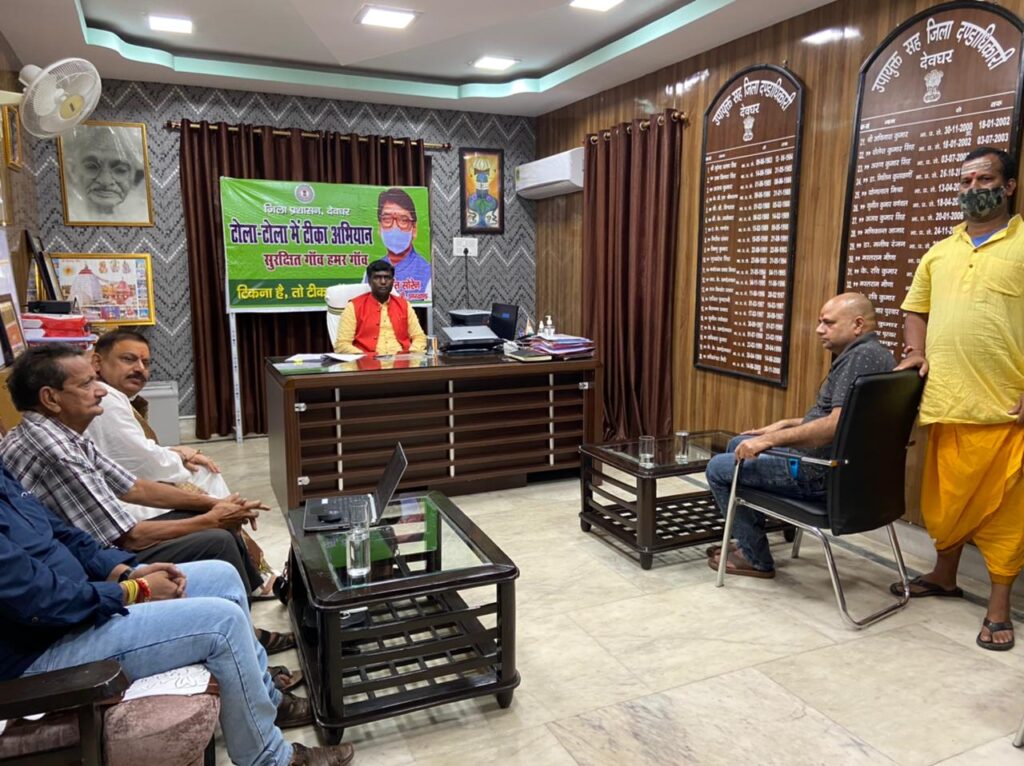 AJ डेस्क: सावन महीना 25 जुलाई से प्रारम्भ हो रहा है। लेकिन कोविड-19 के कारण बाबा बैधनाथ धाम देवघर में इस वर्ष भी श्रावणी मेला नही लगेगा। सावन में श्रद्धालुओं के लिए ऑनलाइन दर्शन करवाने की माँग को लेकर पंडा धर्मरक्षिणी सभा के अध्यक्ष सुरेश भारद्वाज व महामंत्री कार्तिकनाथ ठाकुर सहित कई तीर्थ-पुरोहितों ने उपायुक्त मँजूनाथ भजंत्री से मुलाकात की। सभी ने बारी बारी से उपायुक्त मंजूनाथ भजंत्री से ऑनलाइन पूजा से जुड़े बिंदुओ पर अपनी-अपनी बात रखी।