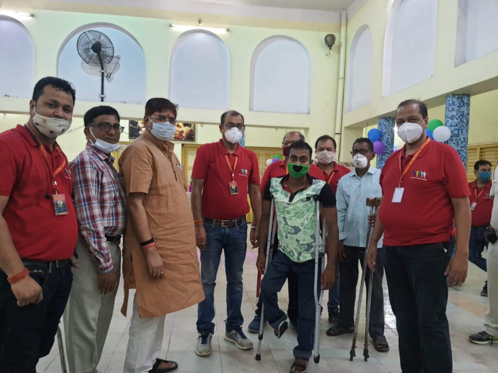 कृत्रिम अंग प्रत्यारोपण शिविर में विधायक ने जरूरतमंदों को बैसाखी दिया