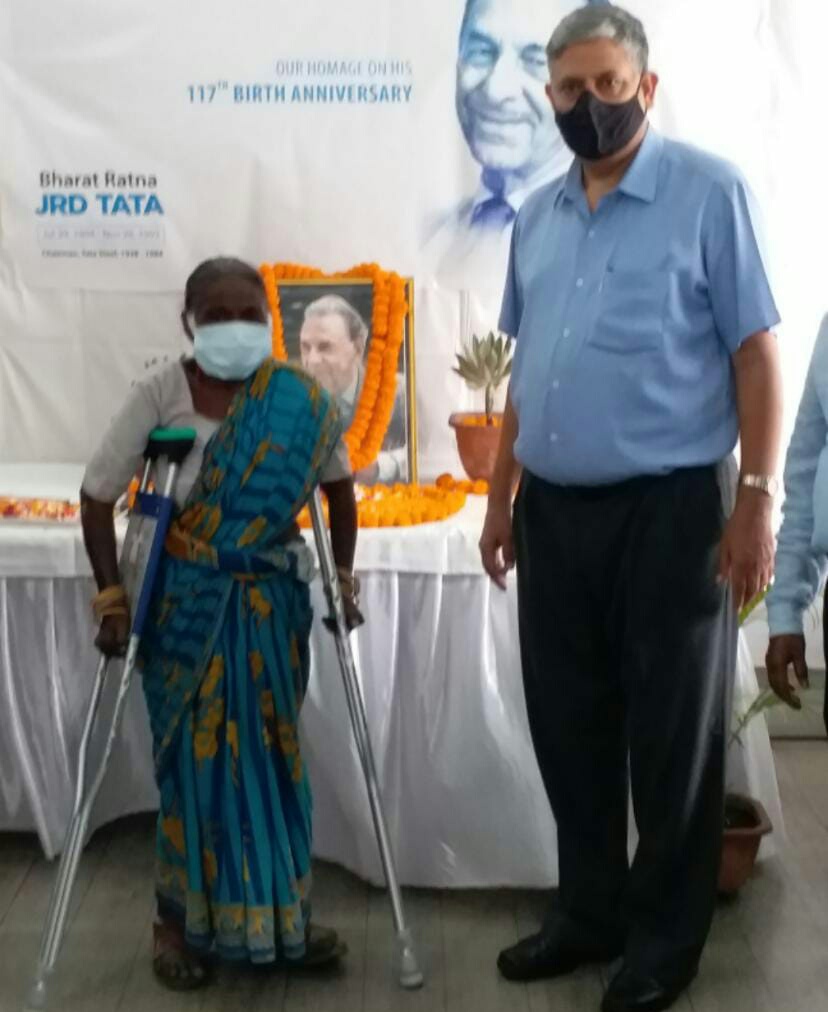 टाटा स्टील झरिया डिवीजन ने भारत रत्न जे आर डी टाटा की जयंती मनाई, दिव्यांगों के बीच बैसाखी बांटा
