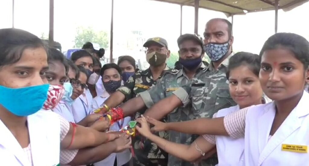 AJ डेस्क: बहना ने भाई के कलाई पे प्यार बांधा है, प्यार के दो तार से संसार बांधा है…. बहन-भाई के पवित्र प्रेम के प्रतीक का पर्व रक्षाबंधन का यह प्रसिद्ध गीत चहुंओर सुनने को मिला। उत्साह के साथ रविवार को धनबाद में रक्षाबंधन का त्योहार मनाया गया। इस दौरान स्कूल ऑफ नर्सिंग की छात्राओं ने अपने हाथों से राखी बनाकर पुलिस लाइन में उपस्थित जवानों की कलाई पर राखी बांधकर रक्षाबंधन का त्योहार मनाया।