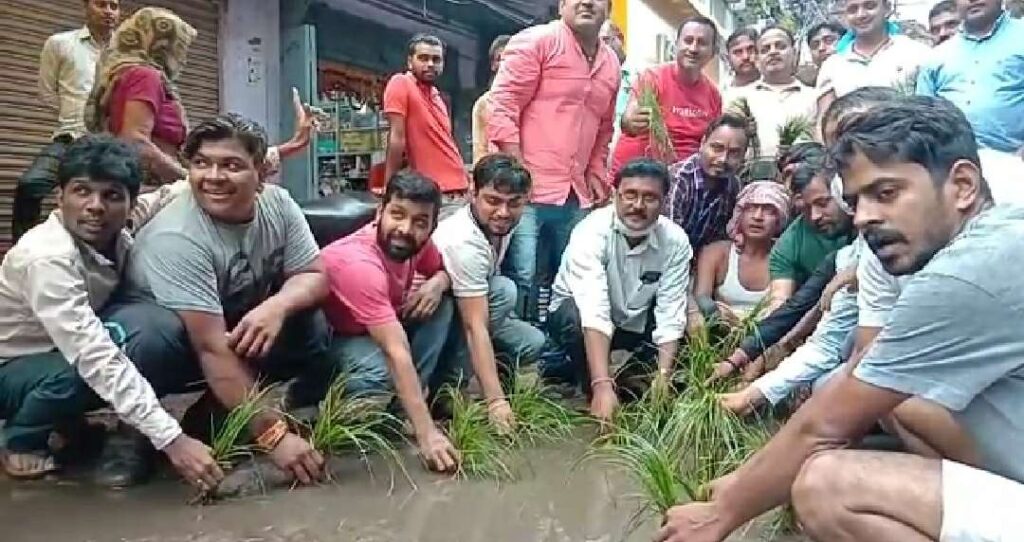 AJ डेस्क: धनबाद के झरिया विधानसभा क्षेत्र के शिव मंदिर रोड गढ्ढे में तब्दील हो जाने से क्षुब्ध लोगों ने मंगलवार को सड़क पर धान रोपनी कर अपना विरोध जताया। इस दौरान भारी संख्या में स्थानीय लोग मौके पर मौजूद थे स्थानीय लोगों का कहना है कि यह सड़क कई अनियमितताओं की पोल- खोल रहा है।