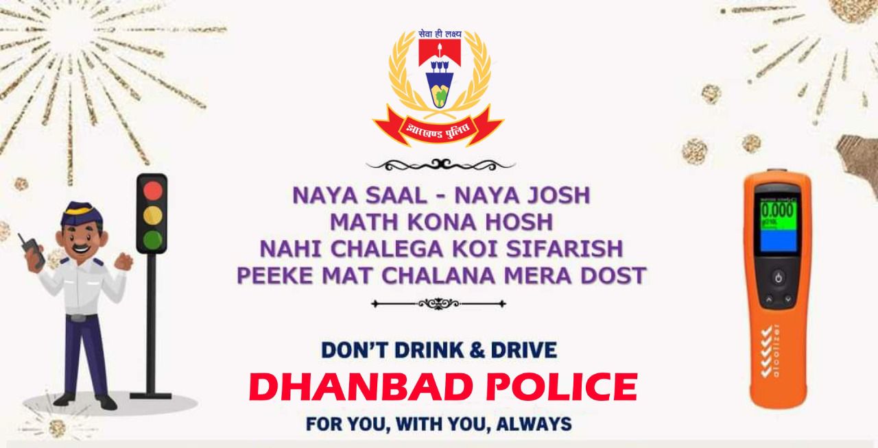 नववर्ष का जश्न मनाएं, पी कर गाड़ी न चलाएं, कोरोना अभी गया नहीं- धनबाद पुलिस ने दिया संदेश