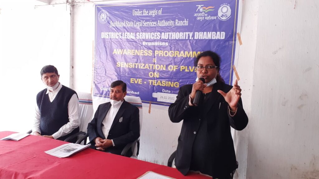 राह चलती लड़कियों को घूर कर देखना, छींटाकशी करना या शारीरिक रूप से उसे परेशान करना, भी अपराध के दायरे में आता है। परंतु लोग इसके प्रति जागरूक नहीं है। शिकायत के अभाव में कार्रवाई नहीं हो पाती है। महिलाएं अपने अधिकार और उनकी सुरक्षा के लिए बनाए गए कानूनों के प्रति जागरूक नहीं है, जिसका इस्तेमाल कर वह ऐसे अपराधों पर रोकथाम कर सकती है। उन्हें जागरूक बनाने की आज जरूरत है इसलिए जिला विधिक सेवा प्राधिकार महिलाओं के अंदर जागरूकता फैलाने के लिए इस तरह का कार्यक्रम आयोजित करता रहा है।