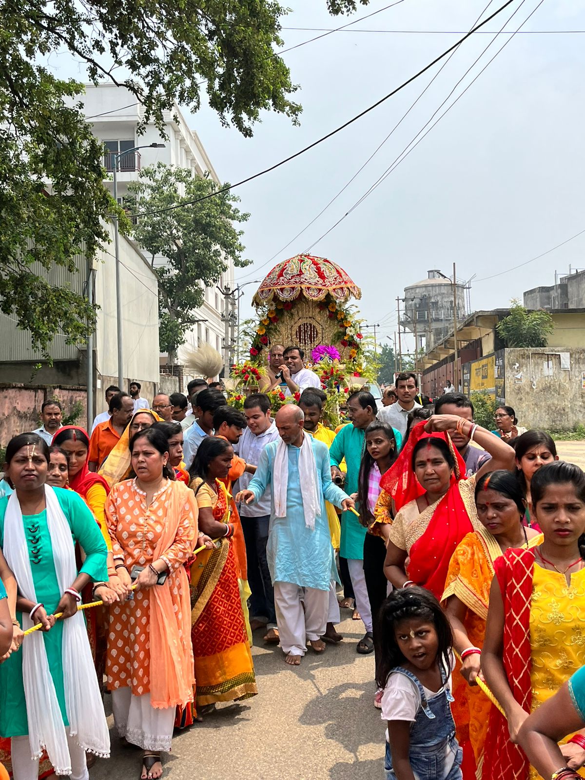 कुसुम बिहार फेज 2 स्थित श्री राम मंदिर के पास पहले भगवान की पूजा अर्चना की गई तत्पश्चात भक्तों ने सड़क पर झाड़ू लगाया।इस्कॉन कुसुम बिहार के संत सुंदर दास गोविन्द की देखरेख में रथ को काफी मनमोहक ढंग से सजाया गया था।