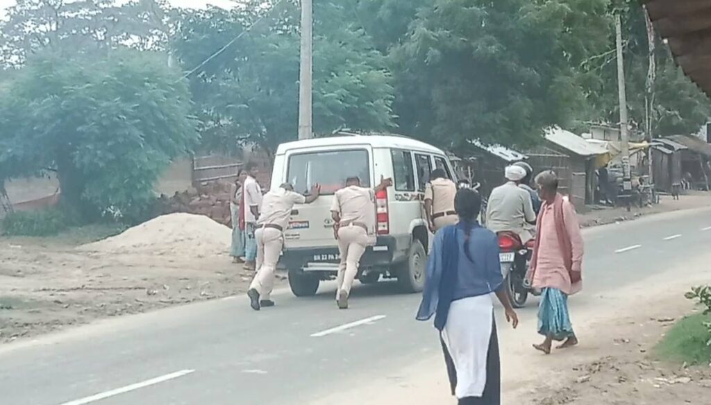 दरअसल, बिहार के बगहा में लोगों की सुरक्षा के लिए गश्त पर निकली पुलिस की गाड़ी रास्ते में खराब हो गई। इसके बाद बीच सड़क पर पुलिसवाले गाड़ी से उतरकर गाड़ी को धक्का देन लगे। पुलिसवालों ने गाड़ी से उतरकर 15 मिनट तक धक्का लगाया, लेकिन गाड़ी स्टार्ट नहीं हुई। पुलिस की धक्का मार गाड़ी देखकर बिहार पुलिस को आधुनिक बनाने के बिहार सरकार के दावे का पता साफ तौर पर लगाया जा सकता है।