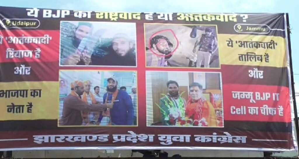 AJ डेस्क: गुरुवार को झारखण्ड प्रदेश युवा कांग्रेस ने जिले के विभिन्न चौक चौराहों पर कन्हैया के हत्यारों का पोस्टर लगाकर भाजपा से पूछ रही है कि “ये राष्ट्रवाद है या आतंकवाद”। वही पोस्टर मामले में झारखण्ड युवा कांग्रेस के प्रदेश अध्यक्ष अभिजीत राज ने मीडिया से बात करते हुए कहा की हर चौक चौराहों पर लगाई गई कन्हैया के हत्यारों की पोस्टर कोई विवादित नही है। इस पोस्टर के माध्यम से कांग्रेस भाजपा से यह पूछना चाहती है की हर आतंकी भाजपाई क्यू होता है। इसका जवाब अब भाजपा के लोगो को देना होगा। आपको बता दें कि उदयपुर में हुई कन्हैया लाल की हत्या मामले में गिरफ्तार एक आरोपित का भाजपा कनेक्शन को लेकर कांग्रेस ने आक्रामक रुख अपना लिया है।
