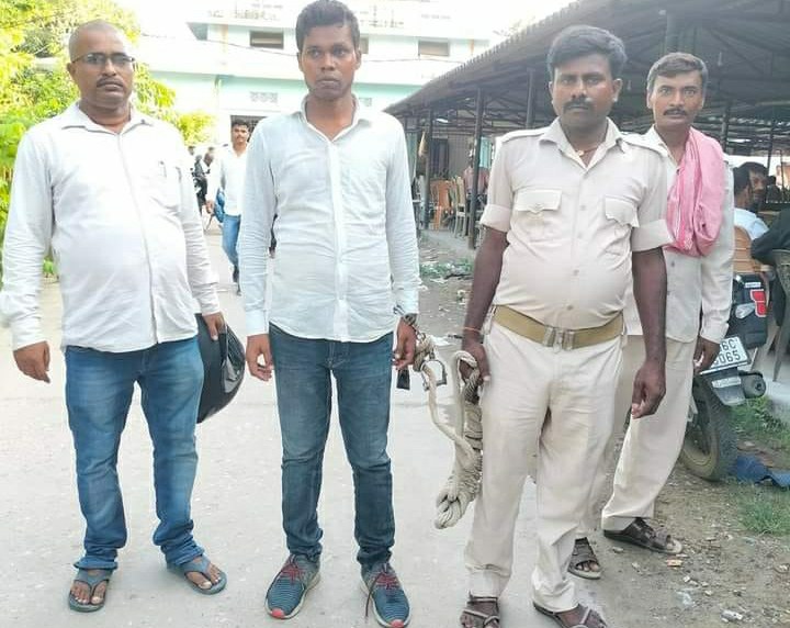 दरअसल मामला मुजफ्फरपुर जिया के मीनापुर का है। मीनापुर थाना में राजेश कुमार नामक नए थानेदार की तैनाती की गई थी। अपने इलाके में नया थानेदार आने पर राजद के छात्र नेता अमरेंद्र कुमार यादव थानेदार को सम्मानित करने बुके लेकर पहुंच गए। सम्मानित कर जैसे ही थानेदार के कमरे से बाहर निकले थाना के बरामदे पर ही उनकी गिरफ्तारी हो गई।