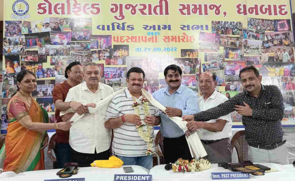AJ डेस्क: रविवार को धनबाद के शास्त्री नगर स्थित श्री कच्छ गुर्जर क्षत्रीय समाज भवन में कोलफील्ड गुजराती समाज की वार्षिक आम सभा आयोजित की गई। इसमें सत्र 2022-24 के लिए यमेश त्रिवेदी को सर्वसम्मति से अध्यक्ष पद के लिए चुना गया। जिसके बाद निवर्तमान अध्यक्ष दीपक उदानी ने यमेश त्रिवेदी को पदभार सौंपा।