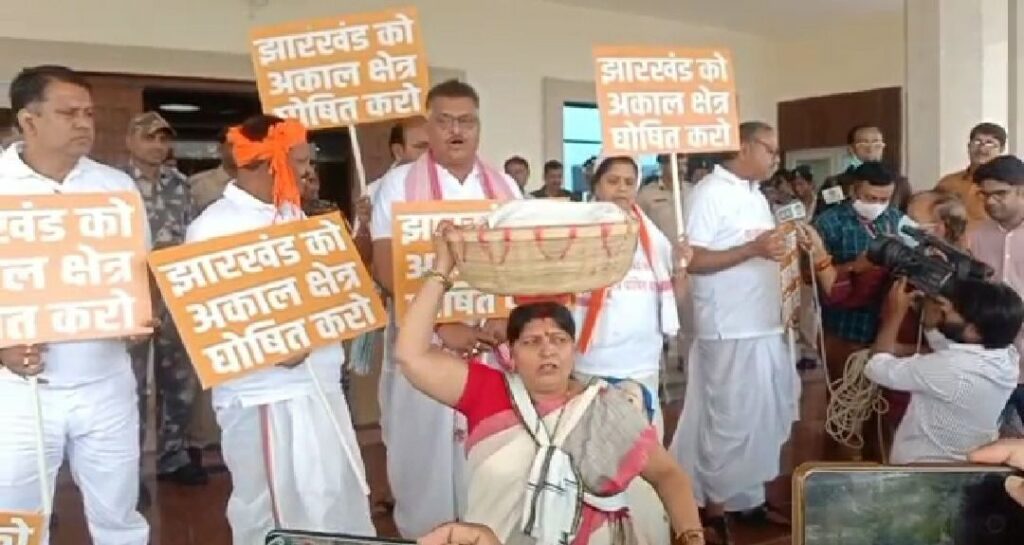 झारखंड को अकाल क्षेत्र घोषित करने की मांग लेकर विपक्ष का अनोखा प्रदर्शन