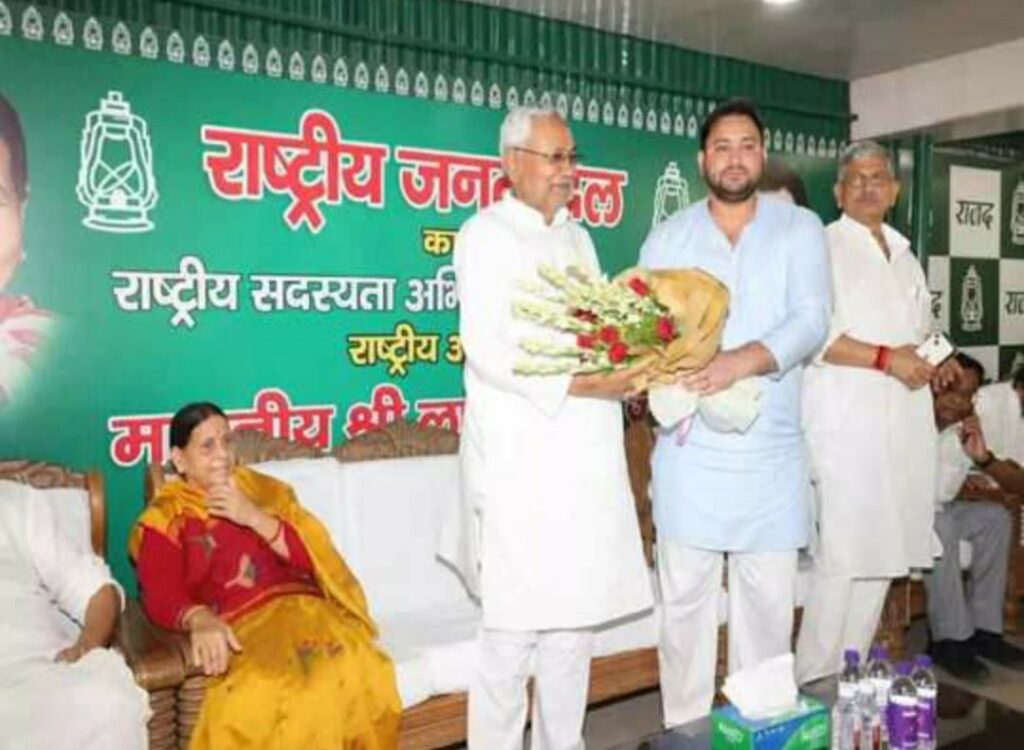 बिहार के मुख्यमंत्री पद से इस्तीफा देने और एनडीए छोड़ने के बाद नीतीश कुमार तेजस्वी यादव से मुलाकात करने के लिए राबड़ी देवी के आवास गए। उनके साथ जेडीयू के राष्ट्रीय अध्यक्ष राजीव रंजन सिंह उर्फ ललन सिंह भी मौजूद रहे। उन्होंने कहा कि बिहार के मुख्यमंत्री पद से इस्तीफा देने से पहले हमने पार्टी के हर विधायक, एमएलसी और सांसद के साथ चर्चा की है। हमारी पार्टी जदयू राष्ट्रीय जनतांत्रिक गठबंधन (एनडीए) से बाहर आ गई है। नीतीश कुमार ने कहा कि राज्यपाल फागू चौहान के साथ बैठक के दौरान हमने बिहार में महागठबंधन की मदद से नई सरकार बनाने का भी दावा किया है। मैंने उन्हें विधायकों की लिस्ट भी सौंपी है।