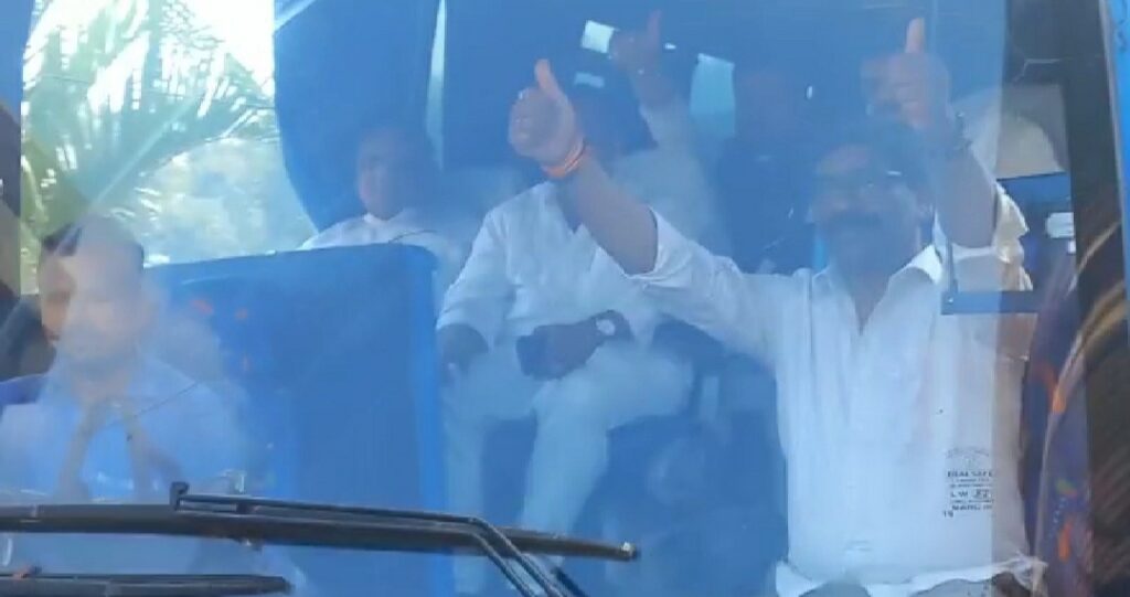 AJ डेस्क: झारखंड सियासी संकट के बीच आखिरकार विधायकों को एयरलिफ्ट किया जा रहा है। यूपीए के 32 विधायक सीएम हाउस से 2 बस में सवार होकर रांची एयरपोर्ट पहुंचे हैं। यहां से सभी इंडिगो की फ्लाइट से रायपुर जाएंगे। दोनों बसें एयरपोर्ट की पिछली गेट से अंदर घुसे और सीधे फ्लाइट तक पहुंचे हैं। एयरपोर्ट में दोनों बसों की एंट्री के लिए स्पेशल अजेंरमेंट्स किए गए थे। विधायकों के एयरपोर्ट पहुंचने से पहले उनका सामान CM हाउस से तीन गाड़ियों में यहां लाया गया।