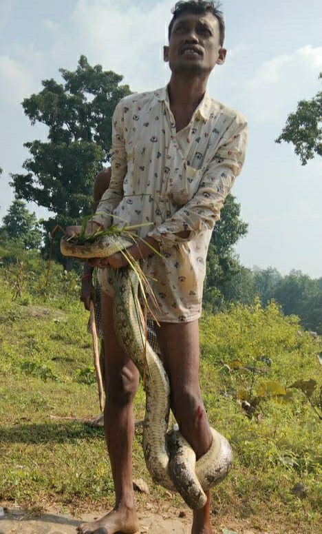जंगल में अजगर ने ग्रामीण को जकड़ घायल कर दिया