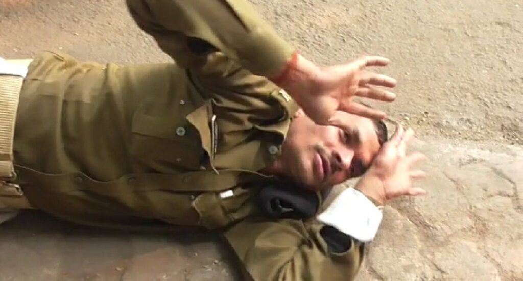 AJ डेस्क: धनबाद ज़िला मुख्यालय के सदर थाना क्षेत्र स्थित कोर्ट मोड़ के पास सड़क पर शनिवार को बेसुध अवस्था में एक पुलिस का जवान वर्दी में पड़ा मिला। यह शख्स शराब के नशे में चूर था। जिससे नशे की हालत में अपने पैरों पर खड़ा भी नहीं हुआ जा रहा था। बेसुध शख्स को हर कोई आते जाते देख रहा था। जवान का नाम विश्वनाथ राम बताया जा रहा है, जो अहले सुबह ही ज्यादा शराब का सेवन कर लेने की वजह से रणधीर वर्मा चौक के पास ही जमीन पर गिर पड़ा।