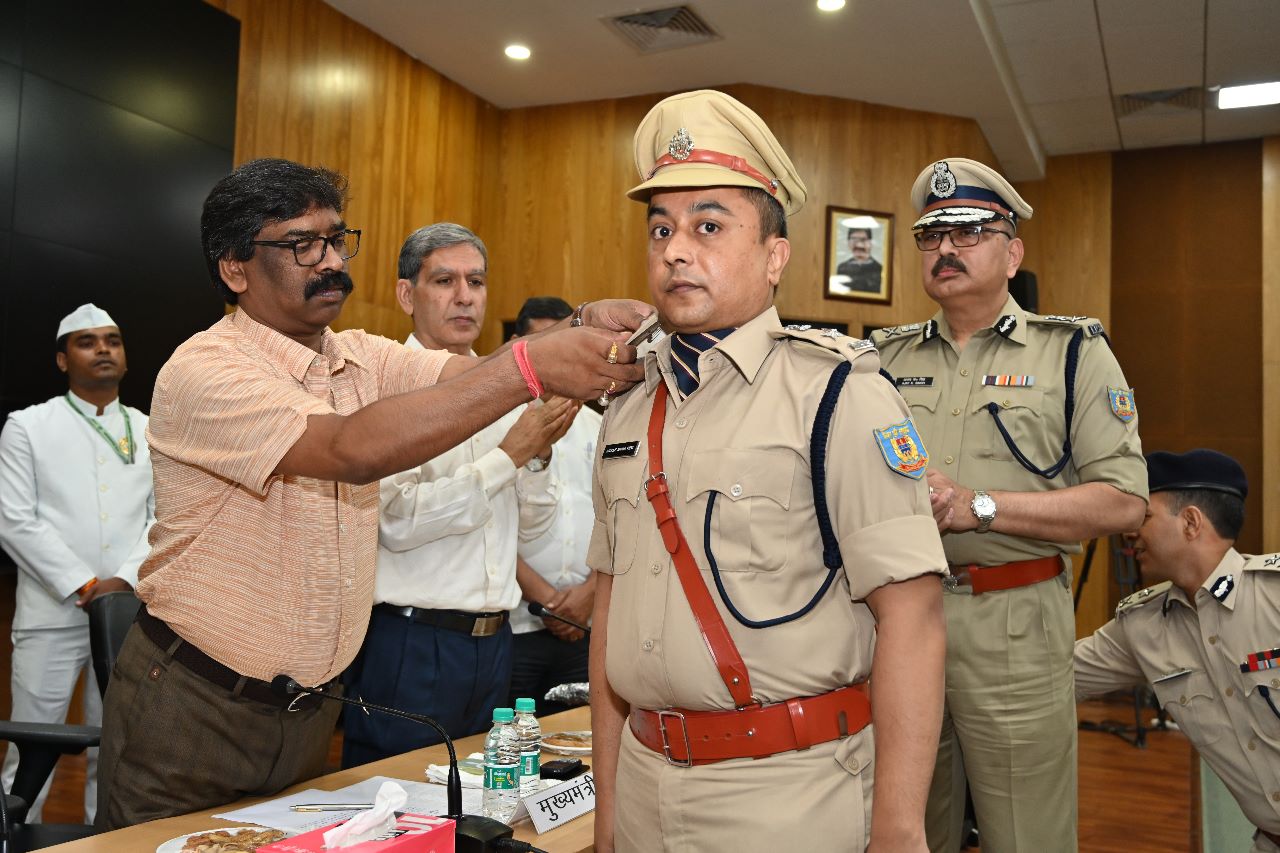 मुख्यमंत्री हेमन्त सोरेन द्वारा बैज लगाकर सम्मानित होने वाले नवप्रोन्नत भारतीय पुलिस सेवा के अधिकारियों में सरोजिनी लकड़ा, एमेल्डा एक्का, सादिक अनवर रिजवी, अरविंद कुमार सिंह, विकास कुमार पांडेय और विजय आशीष कुजूर (सभी 2017 बैच), दीपक कुमार शर्मा, राजकुमार मेहता, शंभू कुमार सिंह, अजय कुमार सिन्हा, अनुदीप सिंह, पूज्य प्रकाश, सहदेव साव, अमित कुमार सिंह, अजीत कुमार, मुकेश कुमार, दीपक कुमार पांडेय और अनिमेष नैथानी (सभी बैच 2019), अजय कुमार-I, आरिफ एकराम, डॉ. विमल कुमार, मनीष टोप्पो, कैलाश करमाली और पीतांबर सिंह खेरवार (सभी बैच 2020) शामिल थे।