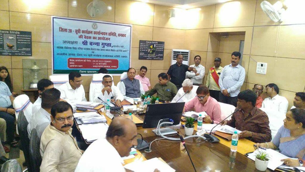 AJ डेस्क: झारखंड के स्वास्थ्य, चिकित्सा शिक्षा और परिवार कल्याण मंत्री तथा आपदा प्रबंधन विभाग एवं अध्यक्ष जिला 20 सूत्री कार्यक्रम कार्यान्वयन सह धनबाद के प्रभारी मंत्री बन्ना गुप्ता की अध्यक्षता में आज समाहरणालय के सभागार में जिला 20 सूत्री कार्यक्रम कार्यान्वयन समिति की बैठक आयोजित की गई।