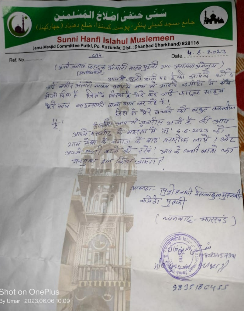 दरअसल, धनबाद के पुटकी तीन नंबर के रहने वाले फारुख अंसारी उर्फ फिदा हुसैन और उनके पूरे परिवार के खिलाफ सुन्नी हंफी इस्लाहुल मुस्लिम कमेटी जामा मस्जिद ने सामाजिक बहिष्कार करने का फरमान सुना डाला है। इस फरमान के तहत लोगों को परिवार के सदस्यों के साथ बातचीत करने या किसी तरह का संबंध रखने पर एक हजार रुपए जुर्माने की राशि तय की गई है।